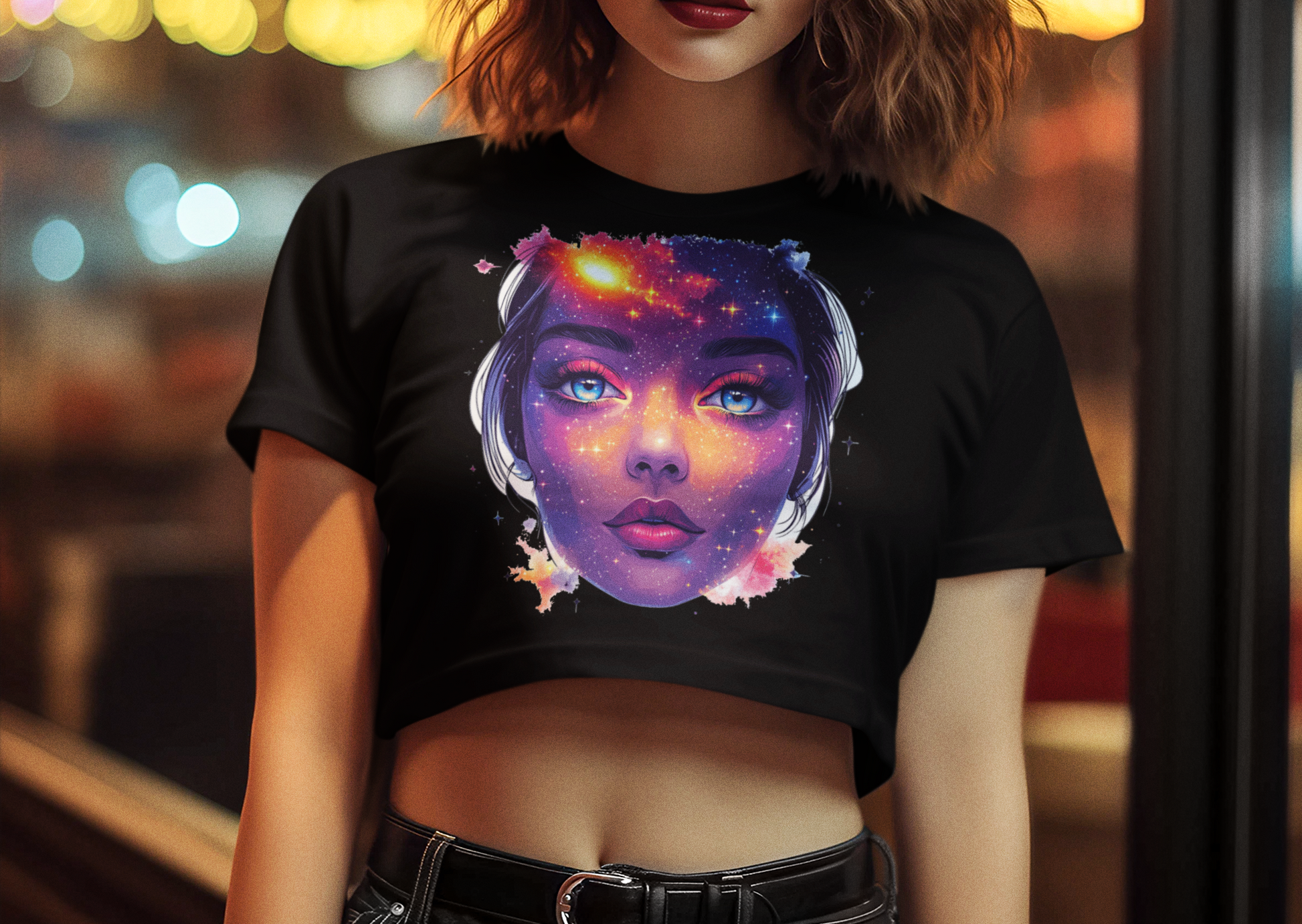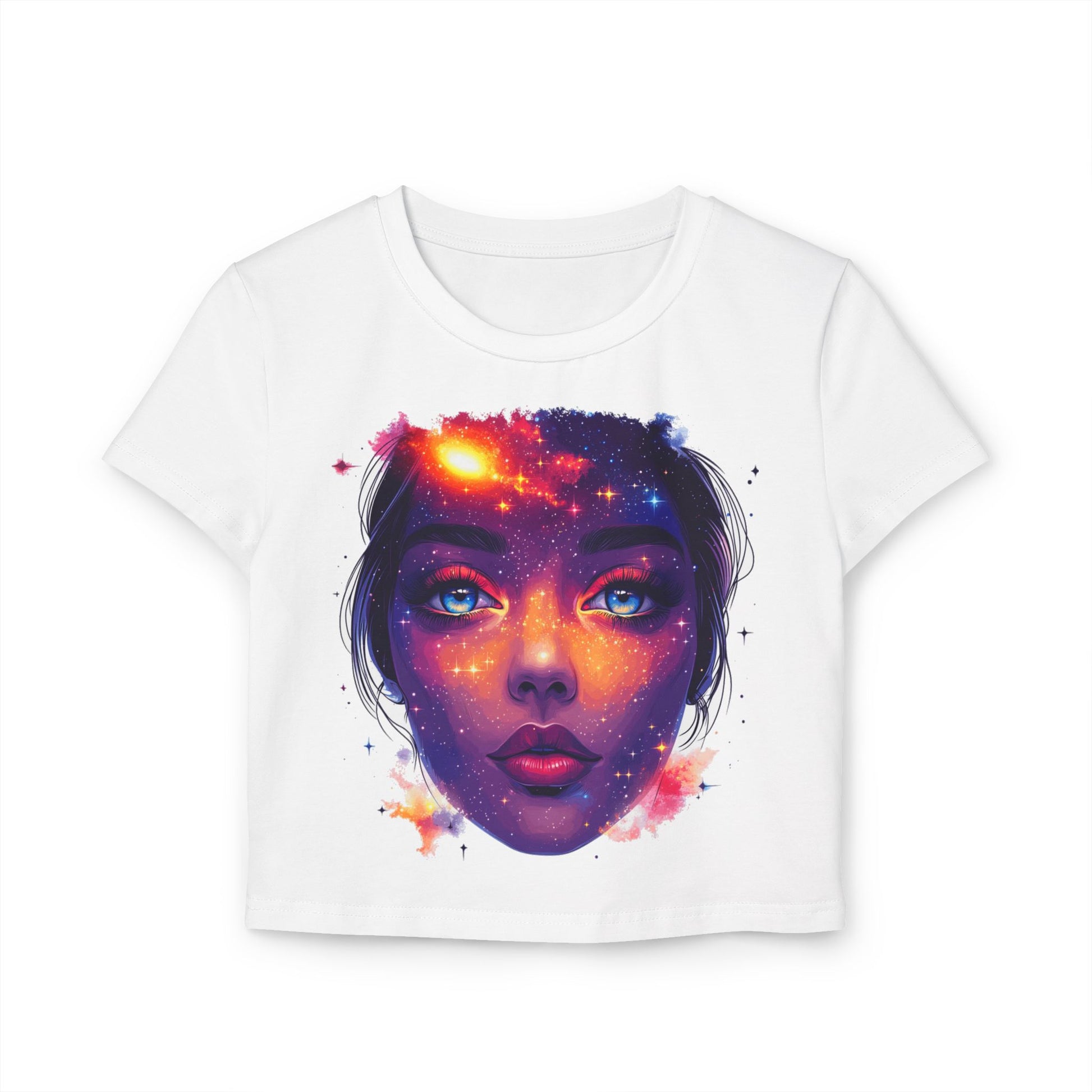 Galactic Baby Girl Vision Women's Baby Tee, Artistic Crop Top, Space Lover's Tee, Unique Graphic Tee, Trendy Women's T-Shirt